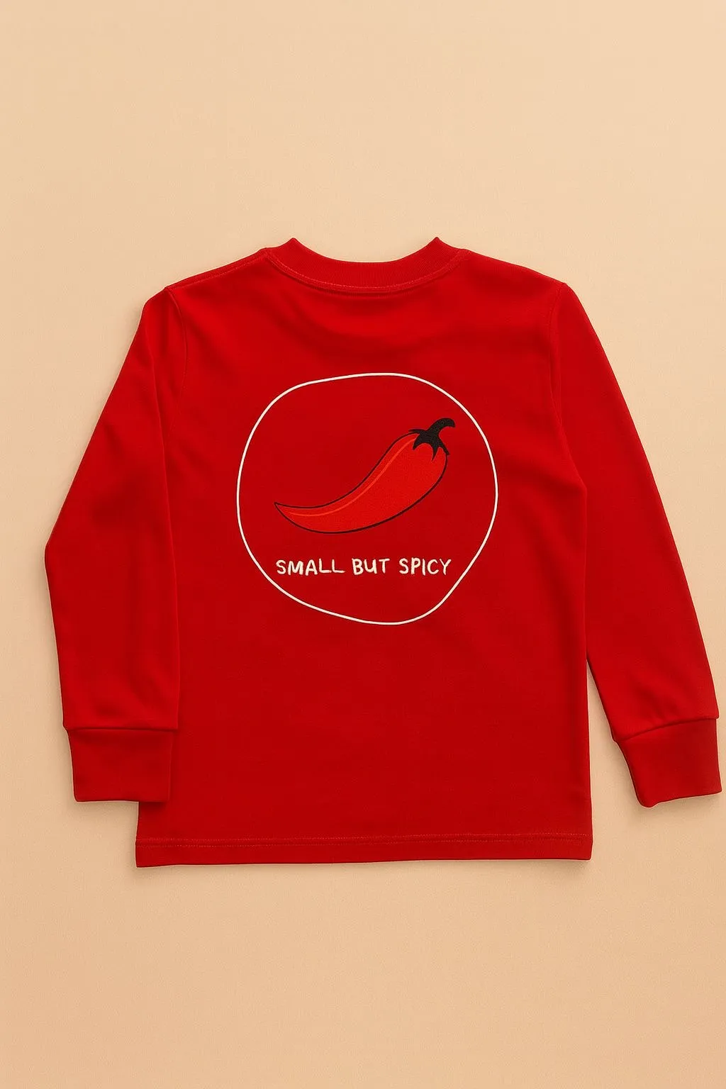 La polera Spicy es para l@s que tienen una personalidad que 🌶️💥 En un vibrante rojo ají y con detalles que no pasan desapercibidos, esta prenda es puro fuego. Su estampado frontal dice “spicy” en letras coloridas y, en la espalda, un ají simpático y la frase Small but Spicy dejan claro que el estilo no depende del tamaño.
